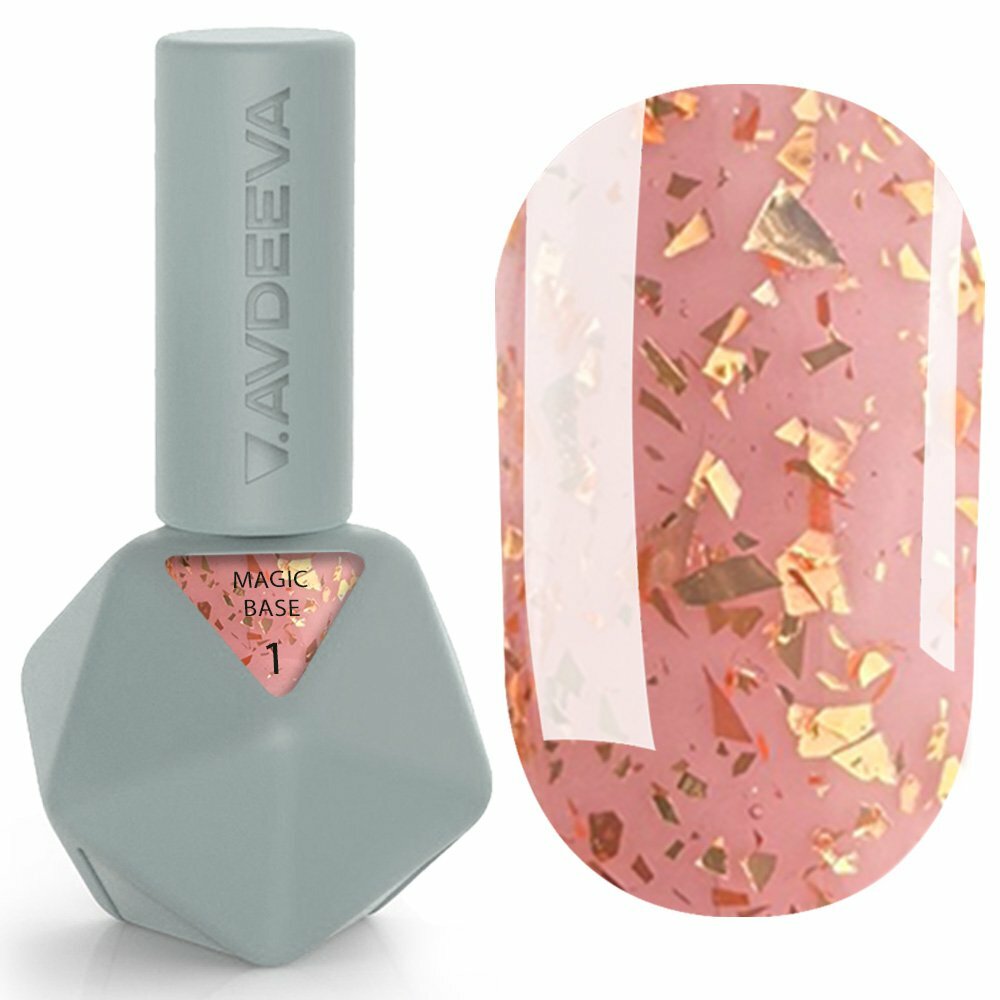 Камуфлирующая база для ногтей Victoria Avdeeva Magic Base 1 розовый с золотой поталью, 12 мл