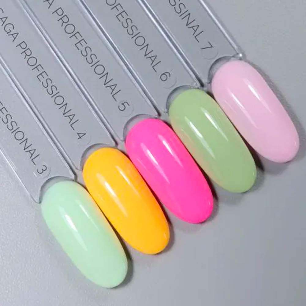 SAGA professional gel polish Colorist - большая палитра цветных гель-лаков – от нежных пастельных до ярких неонов. Самые актуальные оттенки для весенних и летних образов.