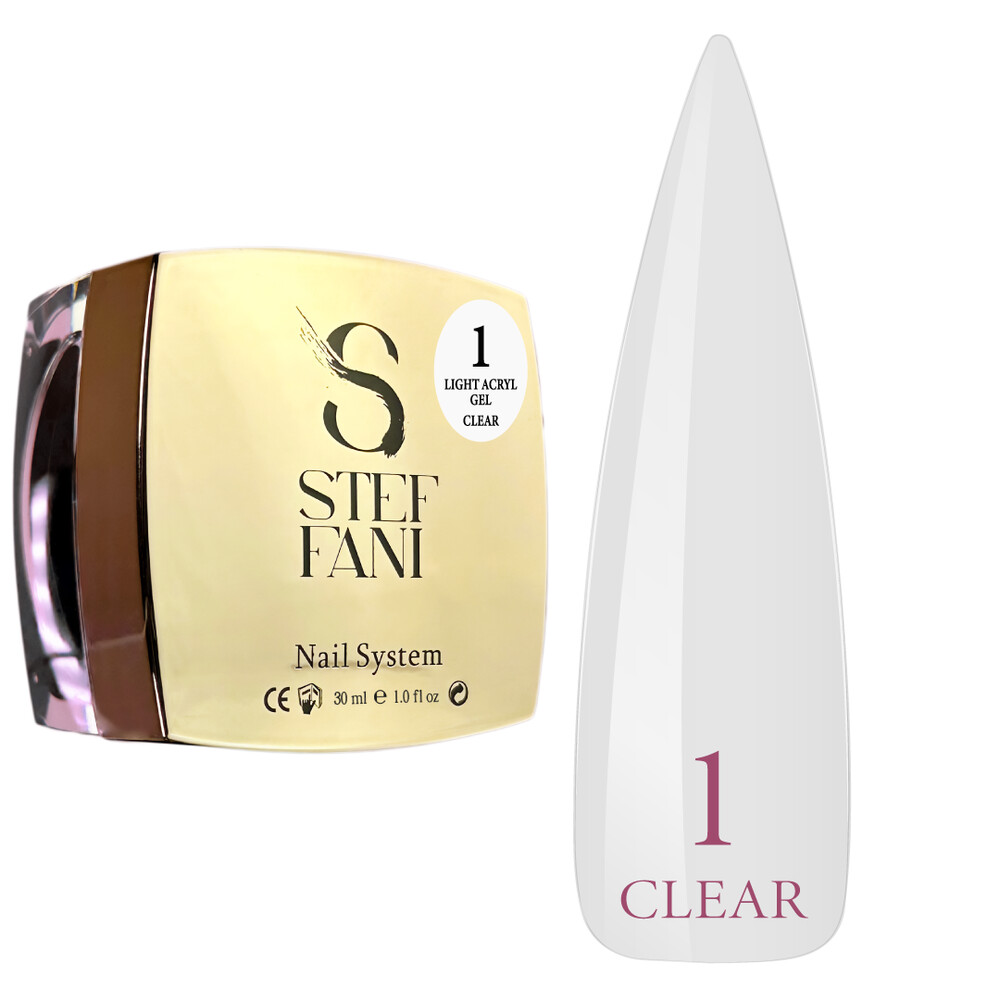Light Acryl Gel Steffani – коллекция жидких гелей, предназначенных для укрепления ногтевой пластины. Благодаря низкой кислотности жидкие акриловые гели абсолютно безопасны для ногтей.