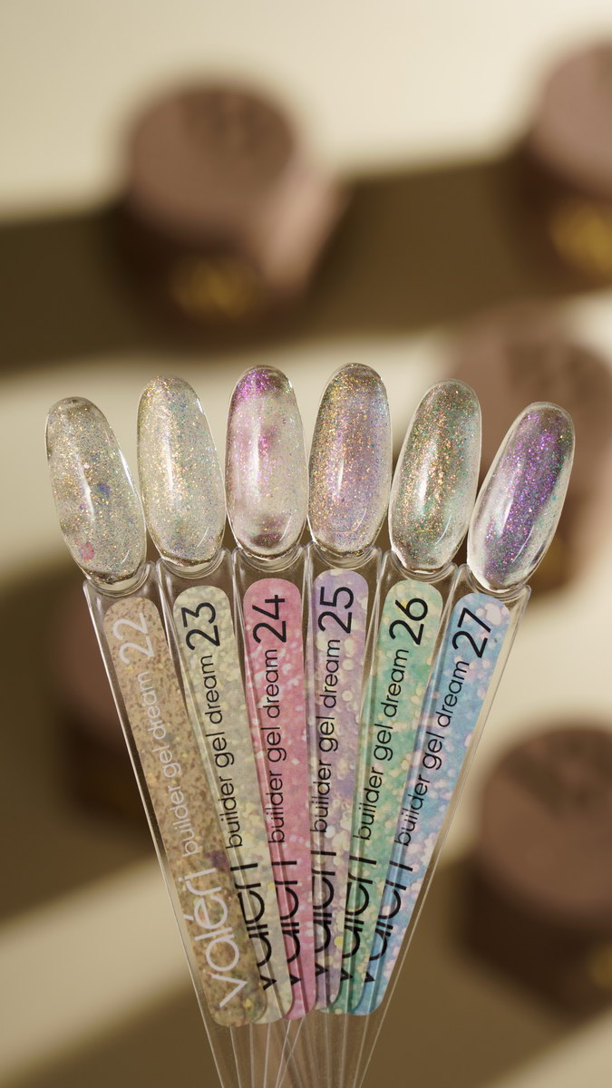 Valeri Builder Gel Dream Collection – это коллекция гелей, используемых как для наращивания ногтей, так и для коррекции и укрепления ногтевой пластины. Это среднетемпературный гель с высокой степенью адгезии, твердый, средней густоты (ближе к густой) за счет чего очень хорошо самовыравнивается, но не затекает. Пигментация – средняя. Легкие в нанесении и хорошо держат арку ногтя.