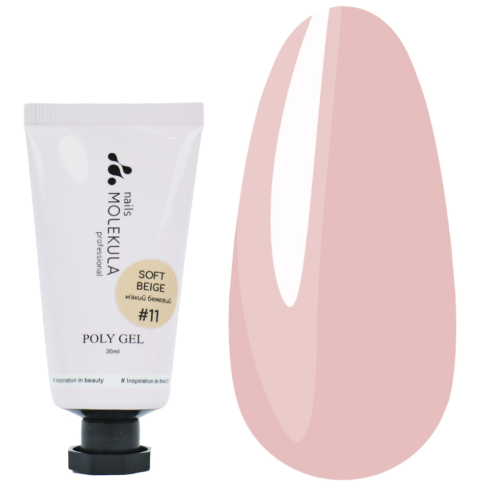Полигель для ногтей Nails Molekula Poly Gel №11 Soft Beige мягкий бежевый, 30 мл