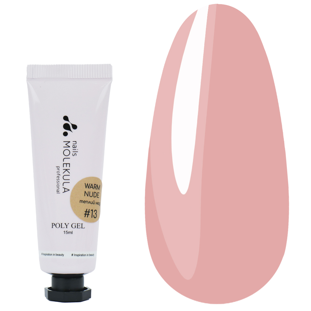 Полигель для ногтей Nails Molekula Poly gel №13 Warm Nude теплый нюд, 15 мл