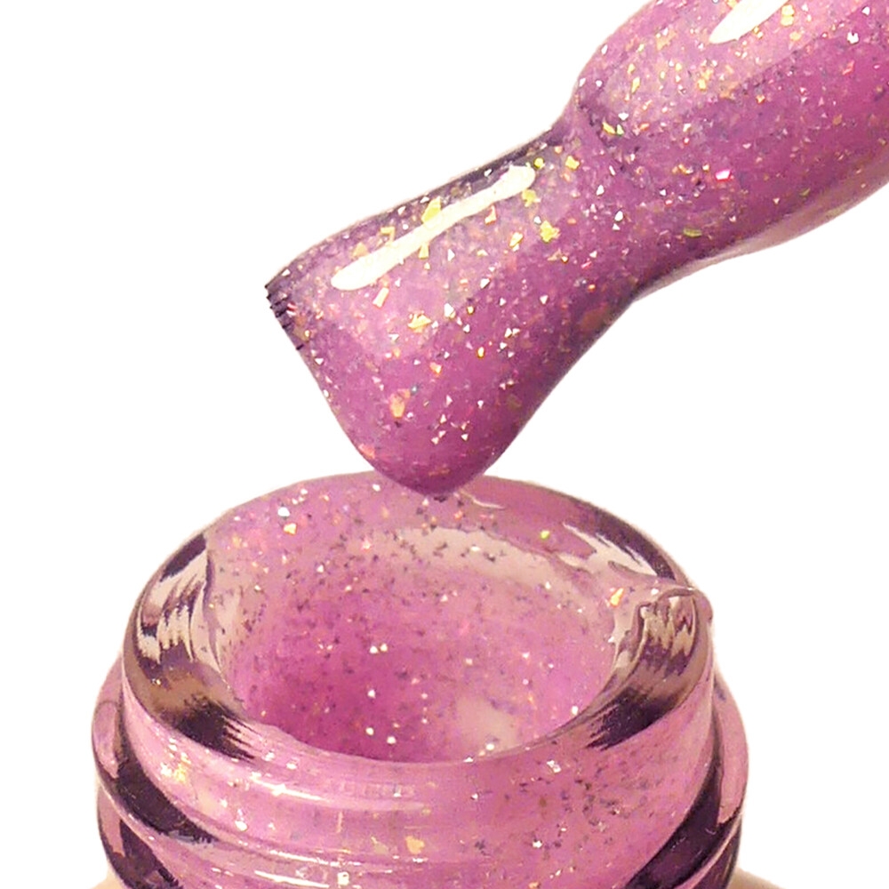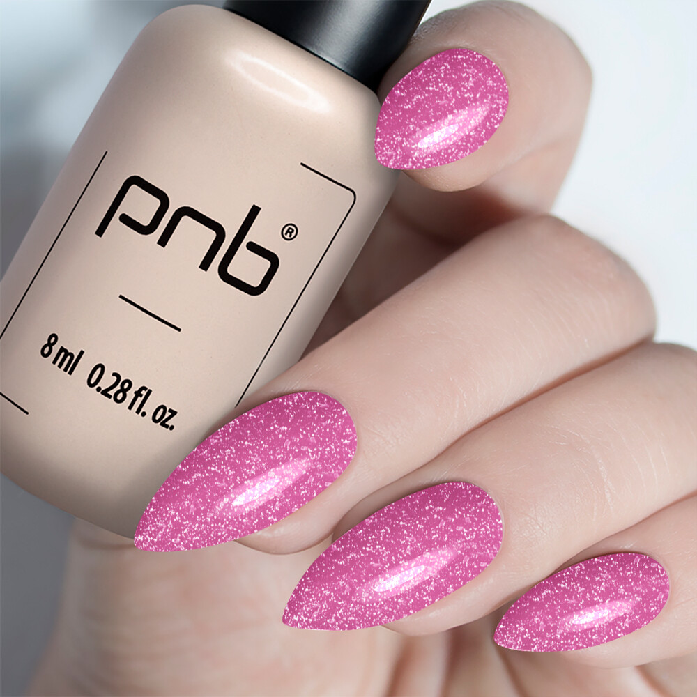Strong Iron Gel PNB, Pink Radiance - розовый светоотражающий гель с голографической блесткой разных форм и розовым шиммером. Прекрасно подходит для создания изысканного и яркого дизайна, подчеркивающего индивидуальность и стиль. Голографические частицы выигрывают всеми цветами радуги, что делает маникюр выразительным и заметным издалека.