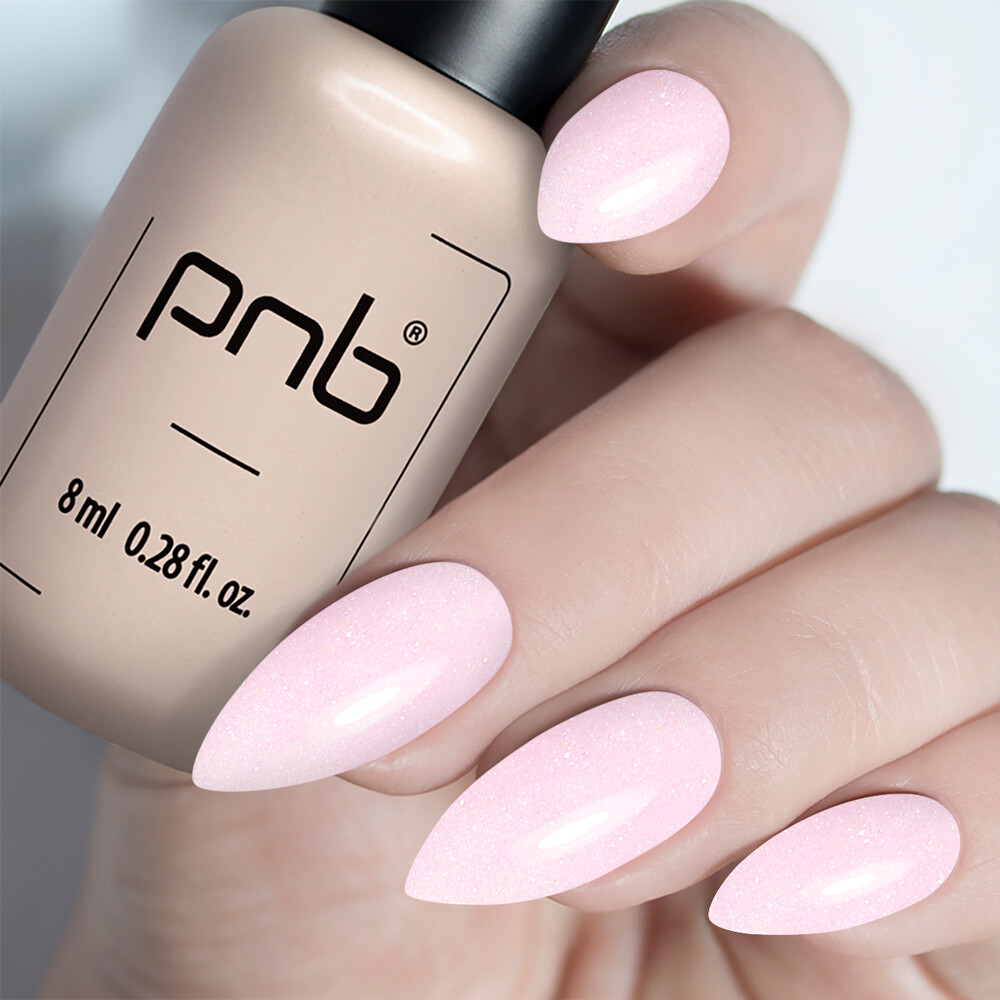 Strong Iron Gel PNB, Frosted Rose - розово-молочный оттенок с мелкими сияющими льдинками серебряного цвета, словно утренняя заря, ласково мерцающая в свете, создавая на ногтях хрупкую, изящную казку. Светящиеся вкрапления напоминают нежно играющий на солнечных лучах иней. Идеальный нюд – это Frosted Rose.