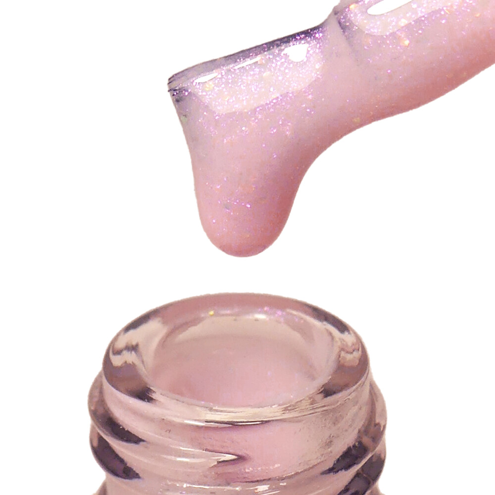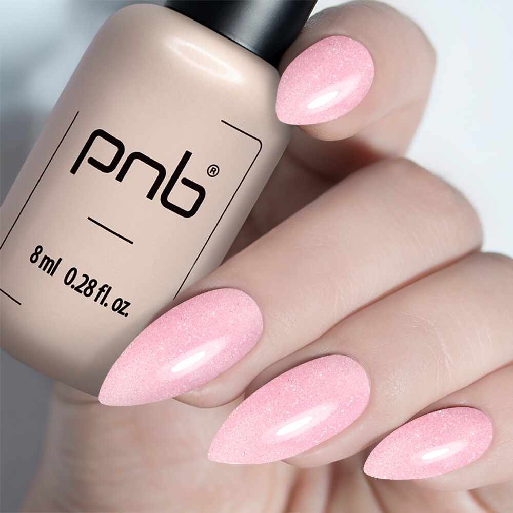 Strong Iron Gel PNB, Blush Velvet - молочно-розовый гель с розовыми бархатными частицами и крупной шестигранной блесткой. Сияние, рассыпанное по всей поверхности, привносит выразительный блеск и переливы, подчеркивая нежное настроение маникюра. Идеально подходит для создания эффектного, но в то же время утонченного дизайна.