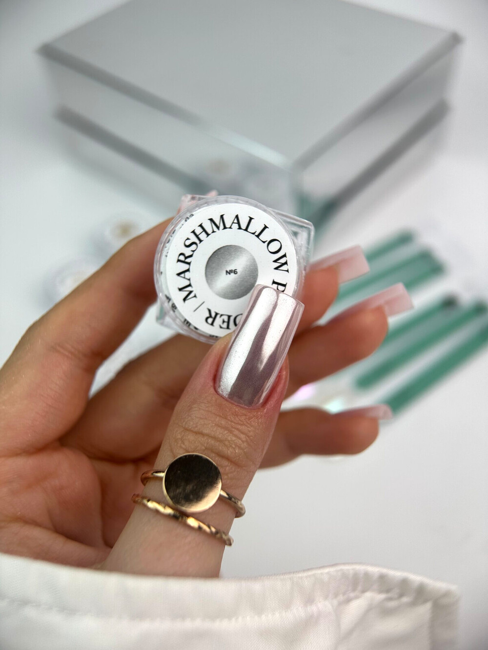 Выберите Marshmallow Powder для создания роскошного перламутрового блеска на ваших ногтях! Благодаря ультратонкому помолу, микродисперсная пудра легко наносится, не образуя комочков, а на поверхности ногтей сияние выглядит как от настоящего жемчуга.
