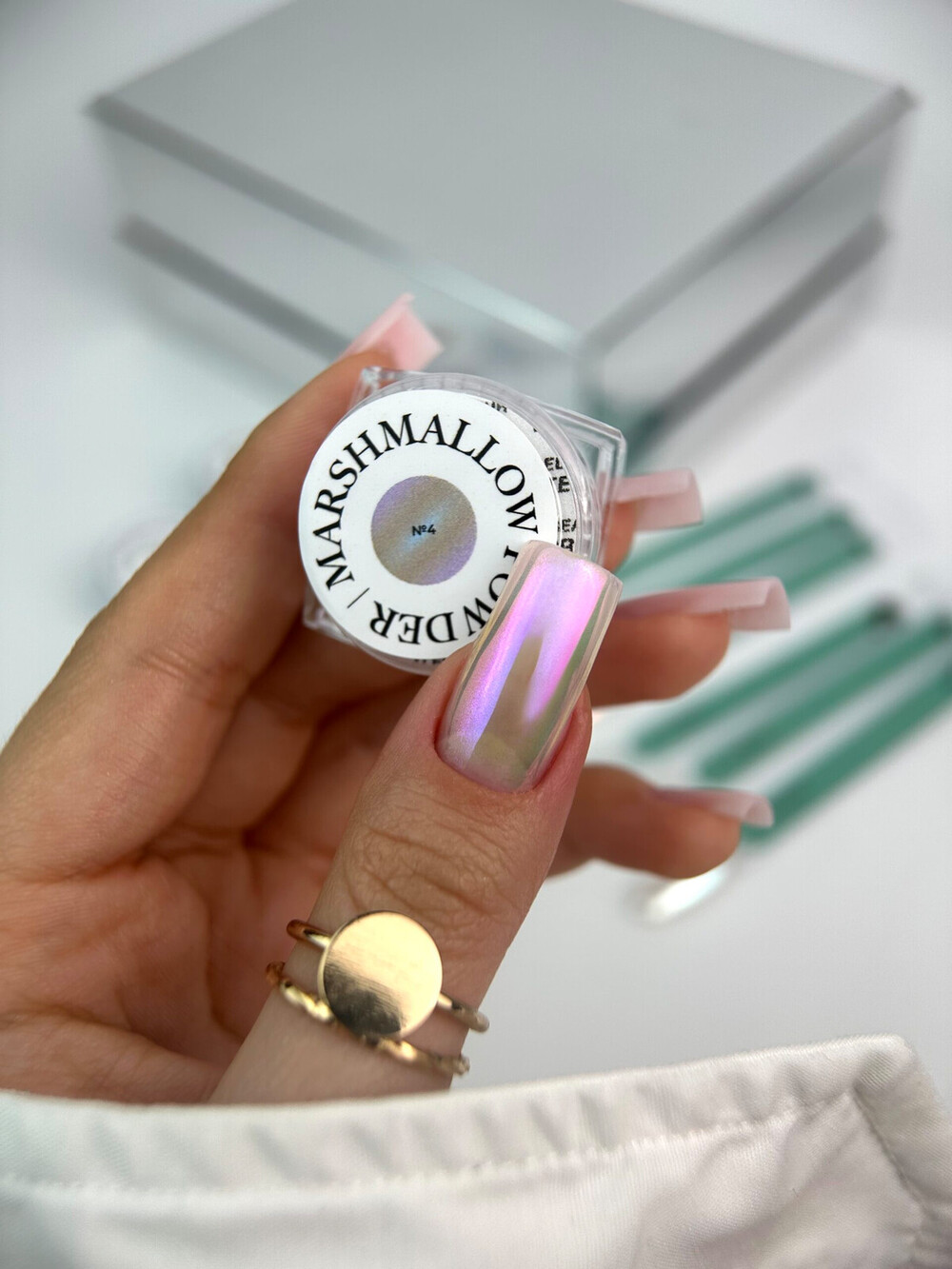 Выберите Marshmallow Powder для создания роскошного перламутрового блеска на ваших ногтях! Благодаря ультратонкому помолу, микродисперсная пудра легко наносится, не образуя комочков, а на поверхности ногтей сияние выглядит как от настоящего жемчуга.