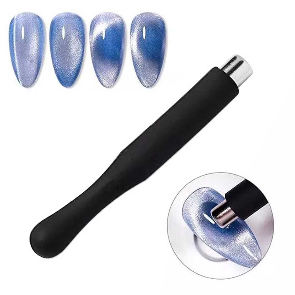 Saga Magnet – магнит-пулька для гель-лака с эффектом кошачьего глаза. Магнит в виде ручки с силиконовым держателем и небольшим цилиндром с магнитной зоной. С помощью этого компактного и простого изделия можно создавать невероятные узоры и блики на поверхности ногтя, покрытой гель-лаком с металлизированными частичками в составе. Для эффективной работы с магнитом его необходимо держать на расстоянии около 5 мм от ногтя.