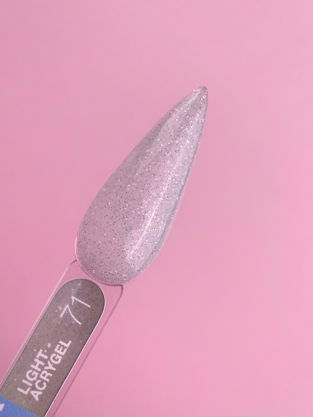 Light Аcrygel – симбиоз полигеля и базы. Он состоит более чем на половину (60-80%) из акрилового сополимера, основной компонент полигеля и небольшого количества гидроксиэтилметакрилата НЕТ (около 20-30%), основного компонента базовых покрытий. Он может полностью заменить базу.