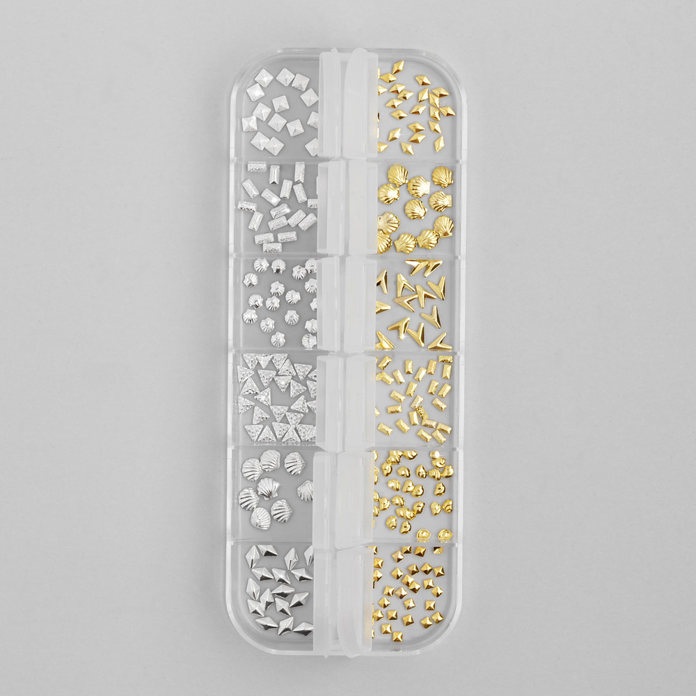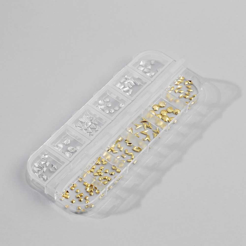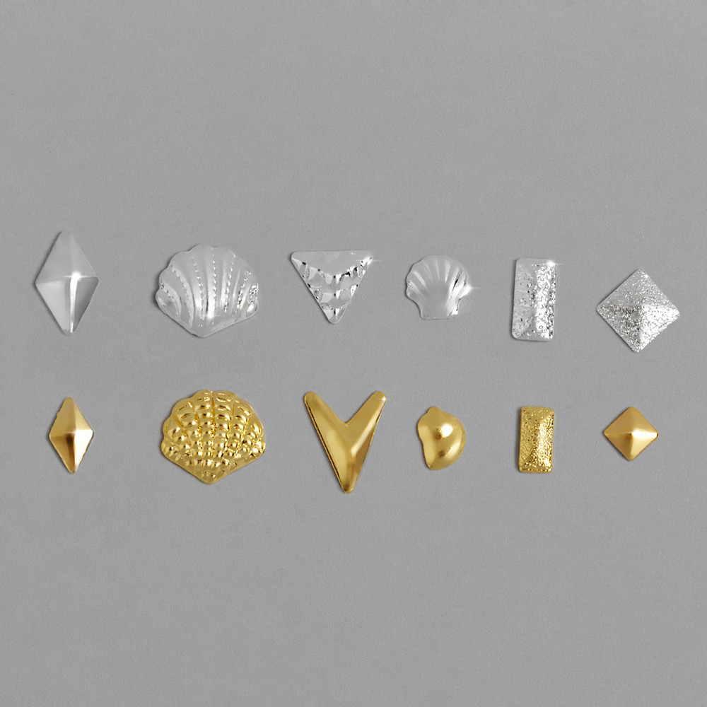 Микс №7 представляет собой набор из 12 различных декоративных элементов разной формы и размера: ромбы, геометрические квадраты, тематические ракушки, стильные прямоугольники и многое другое в трендовом сочетании золота и серебра. Украшения можно крепить на специальный клей Diamond glue и фиксировать с помощью топа, а также использовать их в аквариумном дизайне для создания 3D-эффектов.