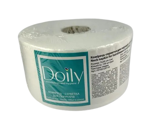 Воротник-салфетка для парикмахеров в рулоне, 7х50 см, спанлейс, гладкая текстура, Doily (100 шт./рул.)