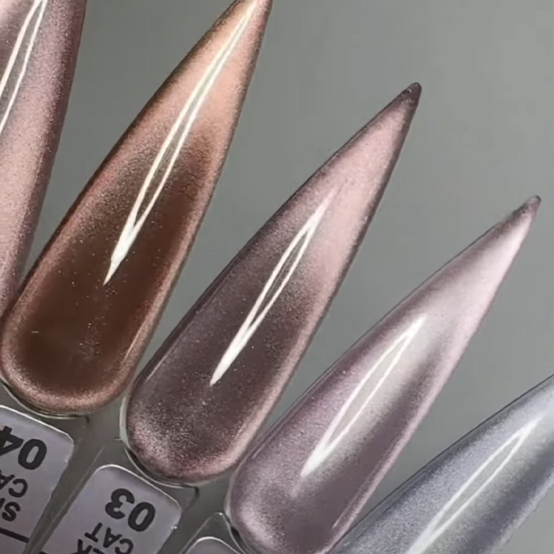 Гель-лак Luxton Silk Cat - оригинальное покрытие с мерцающими, объемными переливами микрочастиц, которые формируют причудливые глубокие рисунки на ногтях, создают эффектный дизайн, придают маникюру черт загадочности. Красивую блестящую полоску, имитирующую кошачий глаз, можно сделать с помощью специального магнита.