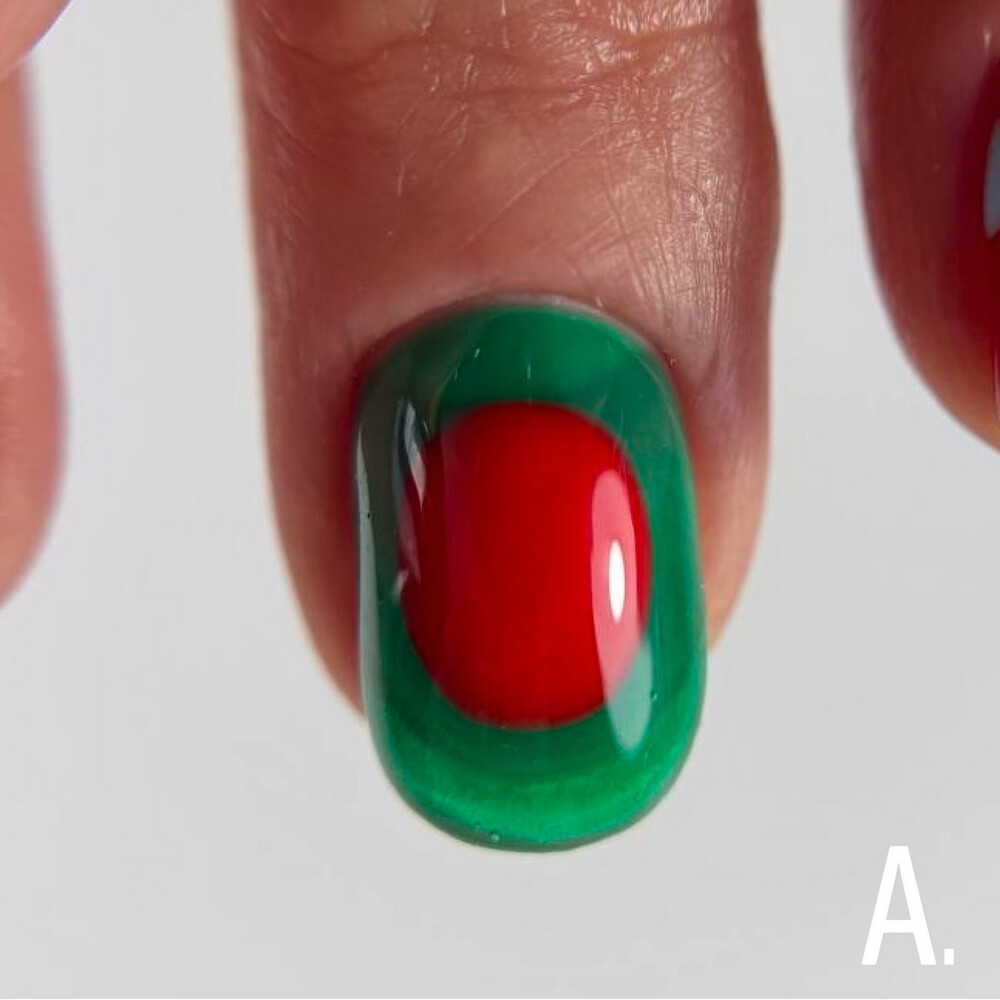 5. Цвет/дизайн: нанести гель-лак средним слоем. Просушить в UV-лампе 2-3 минуты, а в LED-лампе 60 секунд. Для более насыщенного эффекта нанести слой 2 аналогичным способом.