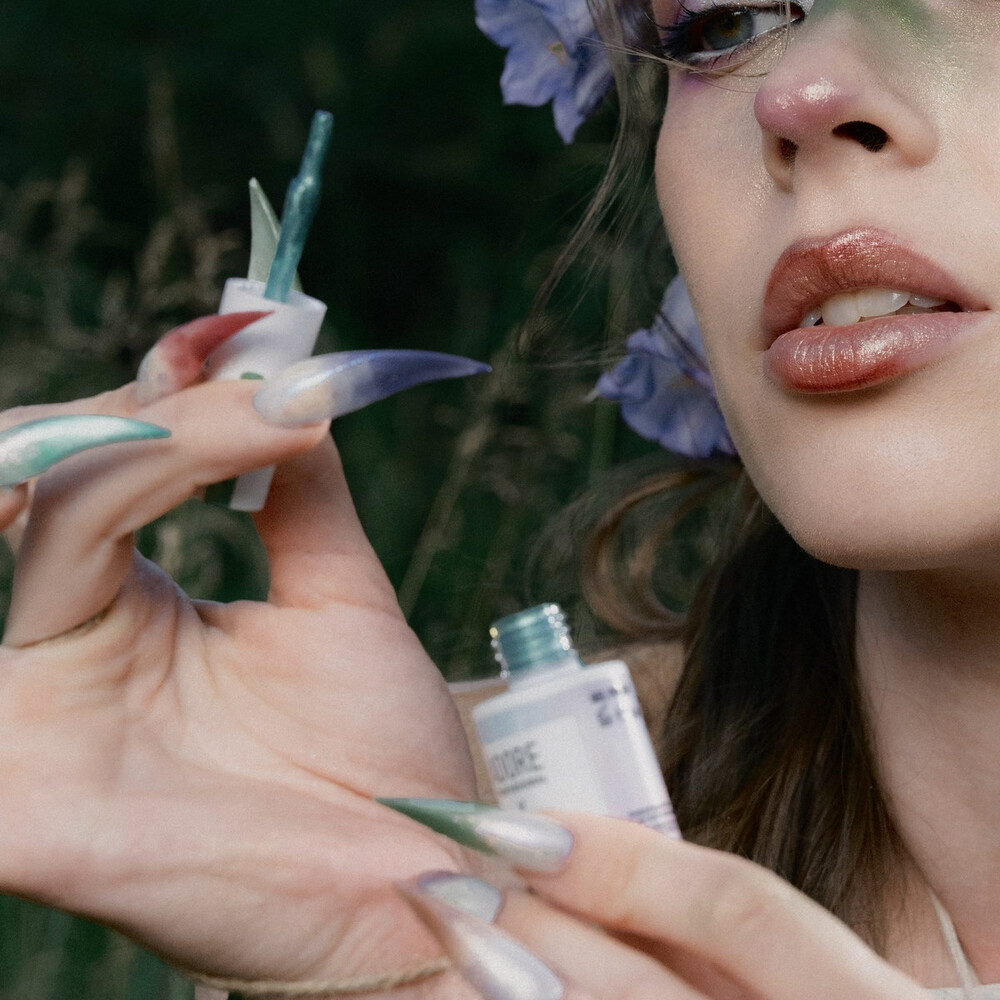 AURA gel polish подходит для wet nails, корейских дизайнов, сверкающих однотонов, а также для создания объемных элементов дизайна. Рекомендуем наносить без подложки для сохранения свойств основания.