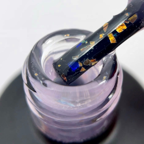 5. Цвет: нанести SHELLY BASE. При необходимости произвести минимальное выравнивание ногтевой пластины до 1мм, распределить кусочки сталь по ногтю с помощью кисти-лайнера. Полимеризировать базу в UV-лампе 2-4 минуты, в LED-лампе – 60 секунд.