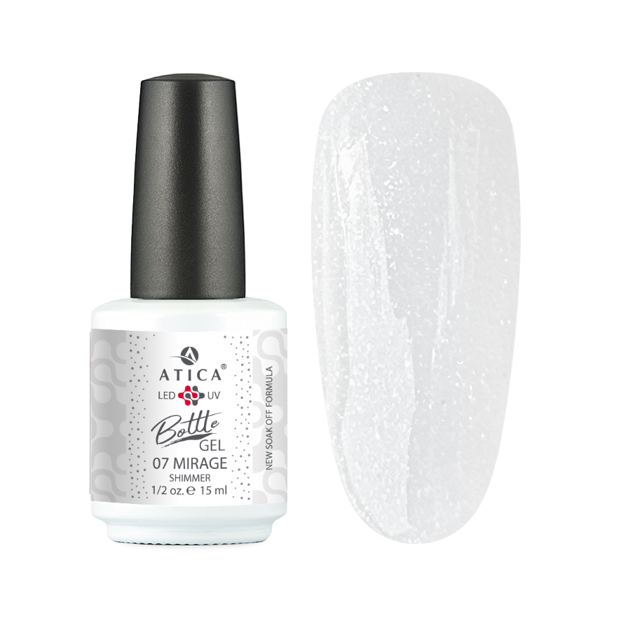 Bottle Gel Atica разработан по инновационной Cool формуле – системе холодных гелей. Это означает, что гель не печет в лампе, делая маникюр комфортным как для мастера, так и для клиента. Благодаря синтетическому каучуку в составе, материал на ногтях выдерживает до 4 недель без усадки.