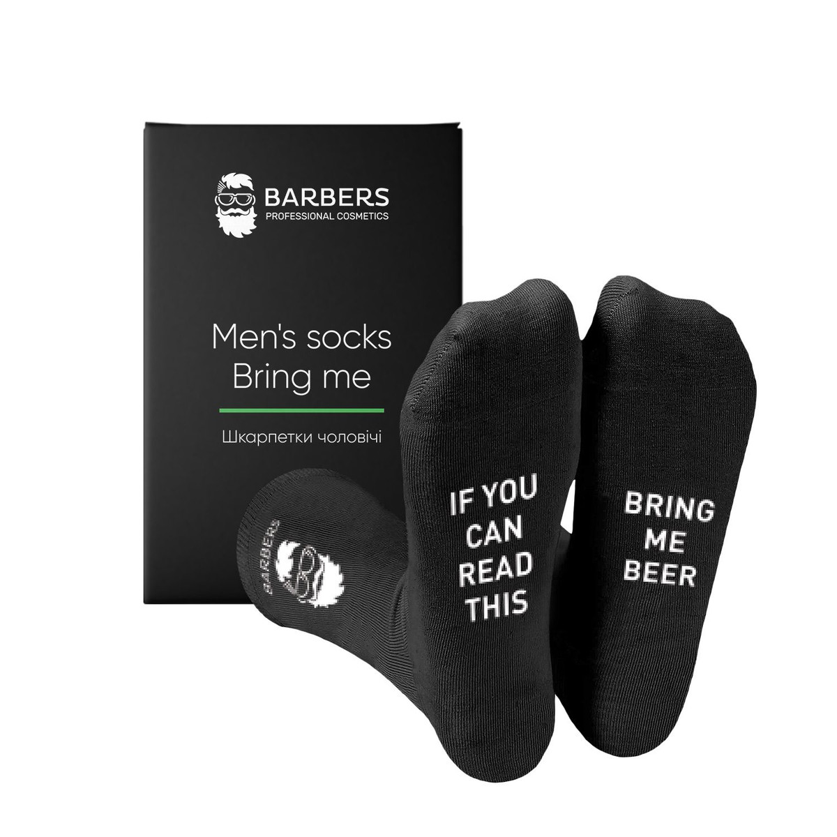 Стильные мужские носки, изготовленные из высококачественного хлопка. Брендированный логотип Barbers™ и оригинальная надпись "IF YOU CAN READ THIS, BRING ME BEER". Такие носки станут полезным и не банальным подарком любому мужчине.