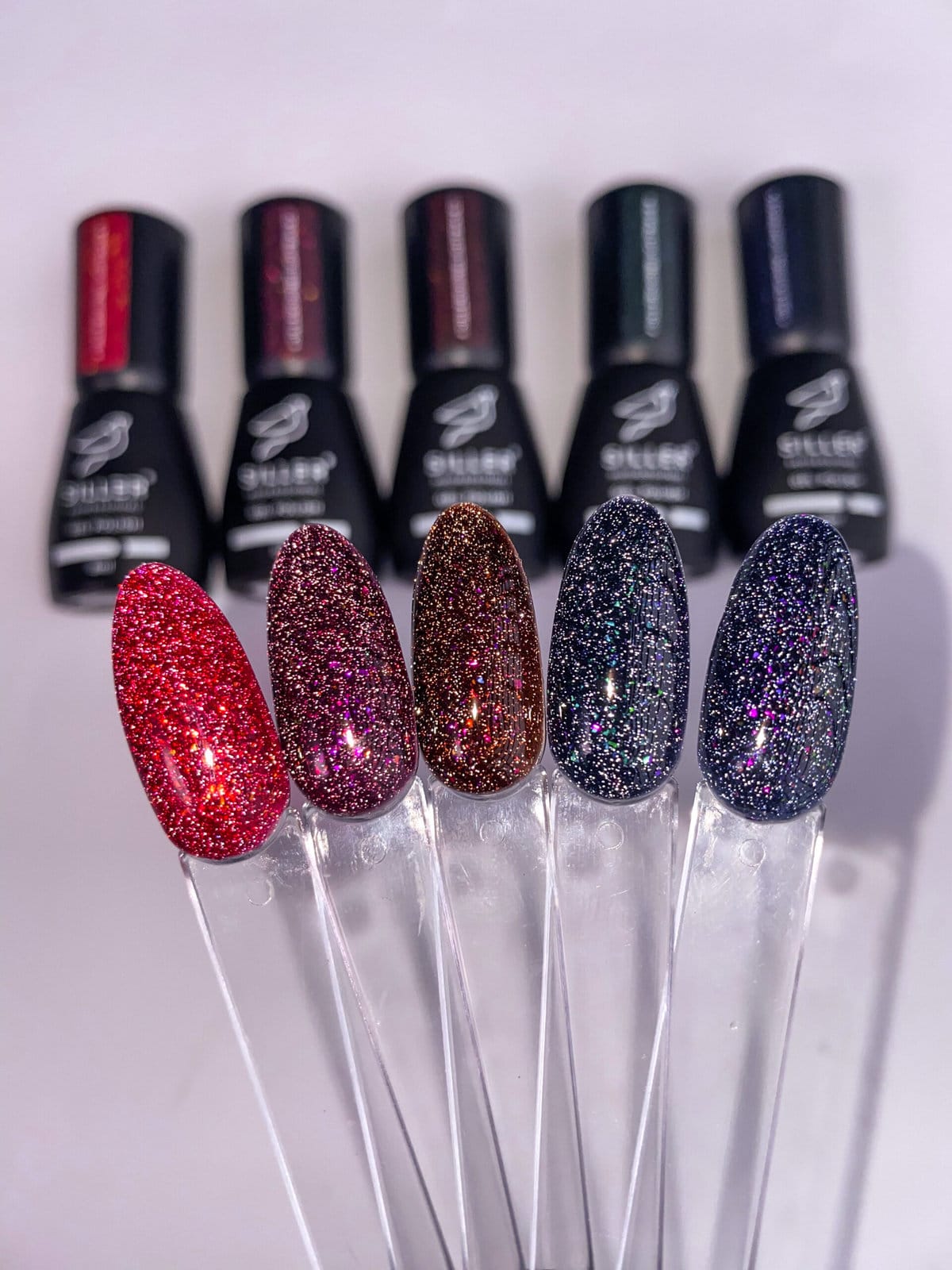 Это база, имеющая светоотражающие частицы, мерцающие под любым углом освещения, особенно при попадании прямого света. Shine Light Base плотно пигментирована, при этом хорошо сохнет.