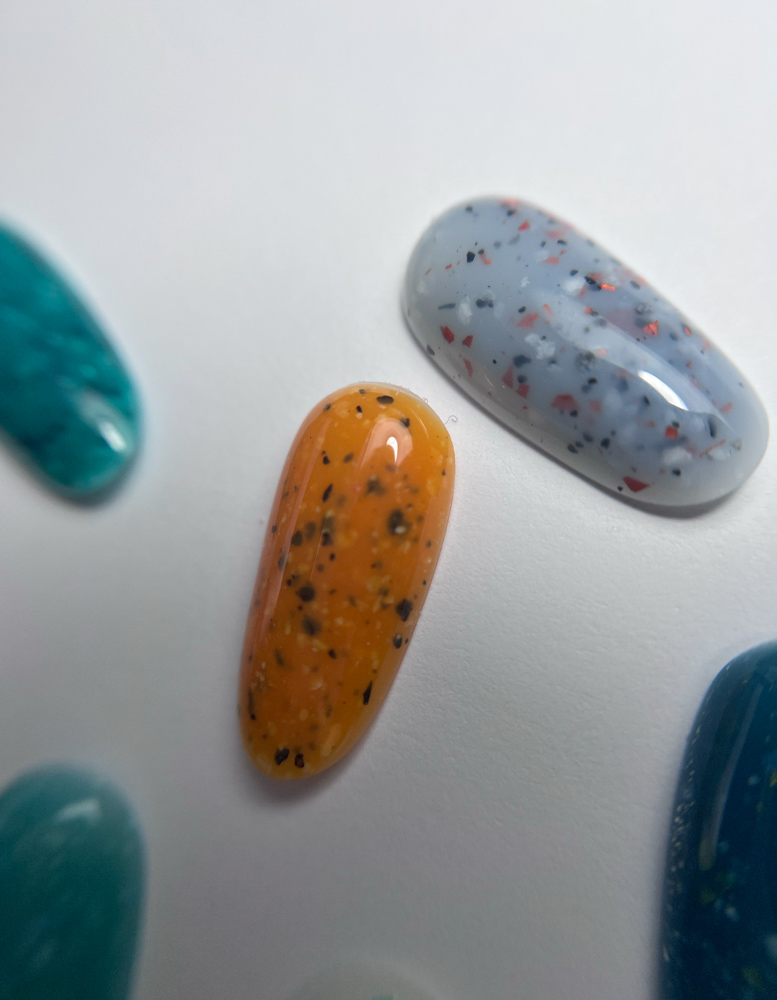 Камуфлирующая база для ногтей Siller Terrazzo Base 8 мл, № 5 оранжевая с черно-белой поталью