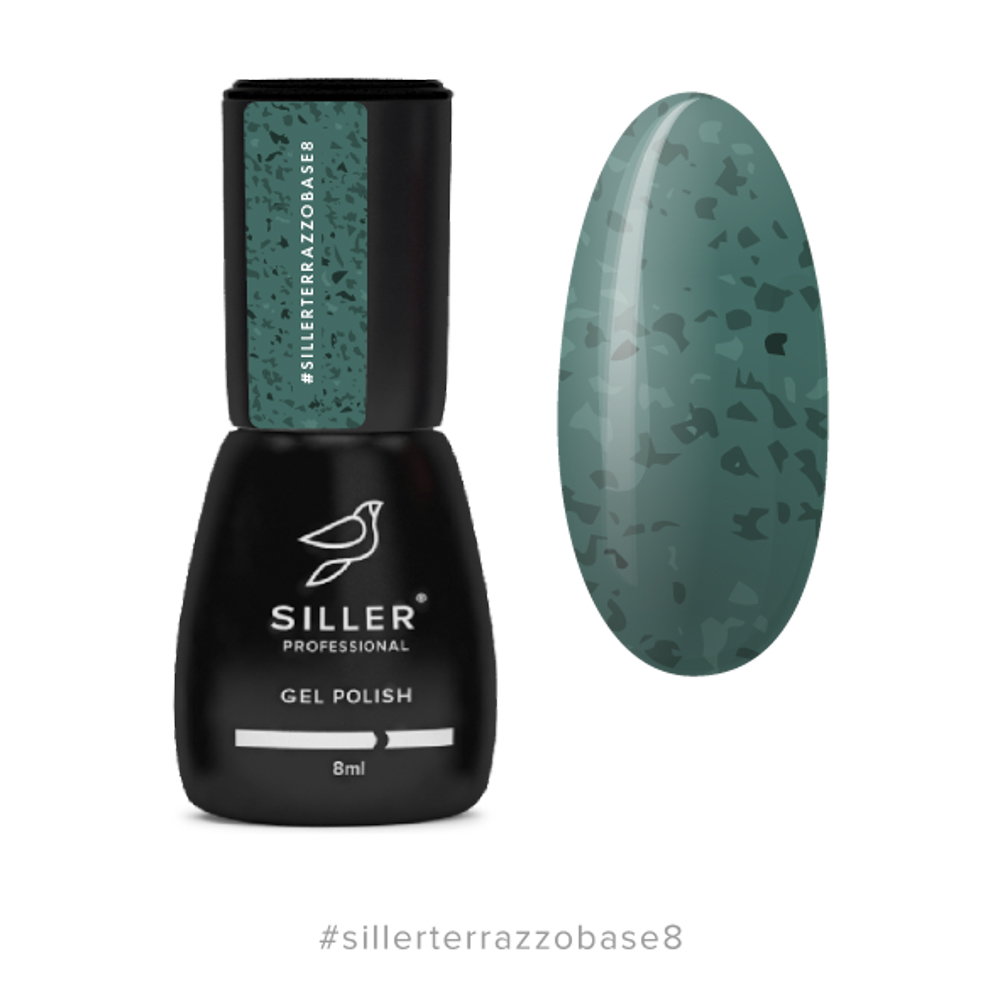 Камуфлирующая база для ногтей Siller Terrazzo Base 8 мл, № 8 зеленая с черной поталью