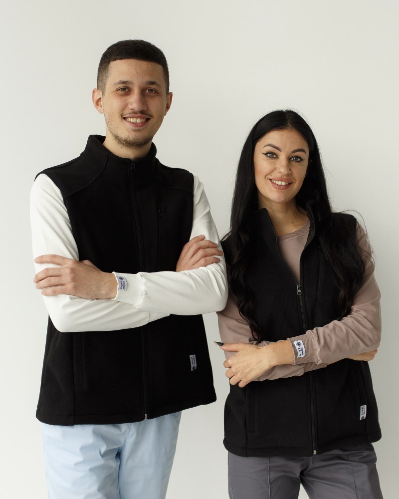 Медицинская жилетка флисовая Канада — базовый элемент рабочего гардероба врача и специалиста индустрии красоты в прохладное время года. Теплая жилетка из флиса позволит чувствовать себя комфортно и активно работать в любых температурных условиях. Медицинская флисовая жилетка Канада хорошо сочетается с медицинскими костюмами и комбинезонными, медицинскими халатами и туниками, свитшотами и лонгсливами, брюками и джоггерами из ассортимента интернет магазина медицинской одежды Белый Халат.