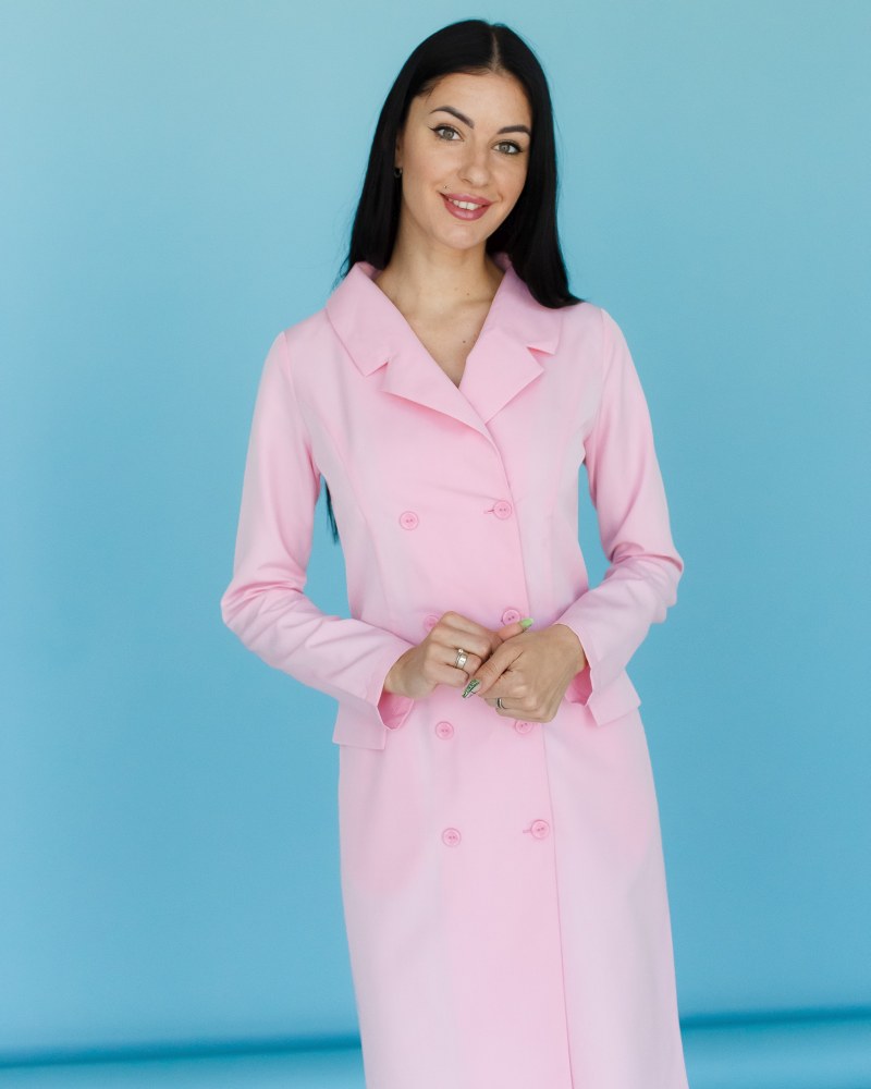 Элегантный халат медицинский пиджачного фасона. Лаконичная длина, два ряда брендированных пуговиц и отложной классический воротник (английский ) делают такой халат идеальной униформой не только для практикующих врачей, но и бьюти-мастеров, преподавателей медицинских учреждений.