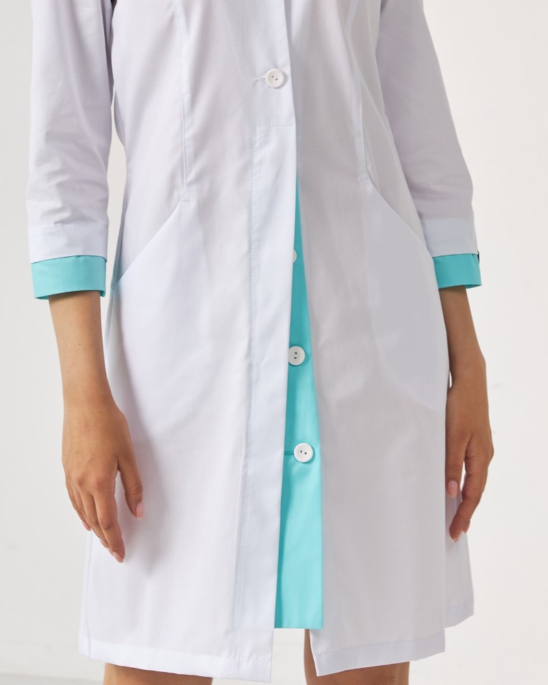 Медицинские халаты женские Оливия с акцентными вставками подойдут не только врачам, но и мастерам индустрии красоты. Сдержанный А-силуэт, лаконичная длина и удобные пуговицы обеспечивают комфорт в течении активного рабочего дня.