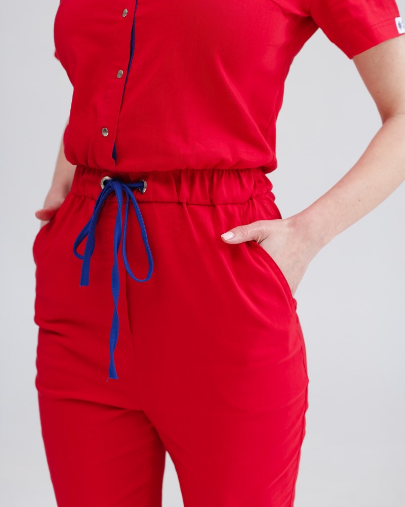 Медицинский комбинезон женский Даллас красный с синей строчкой р. 46, "БЕЛЫЙ ХАЛАТ" 127-339-715