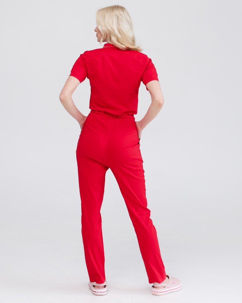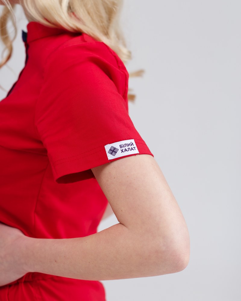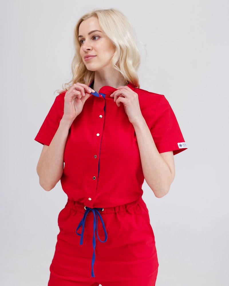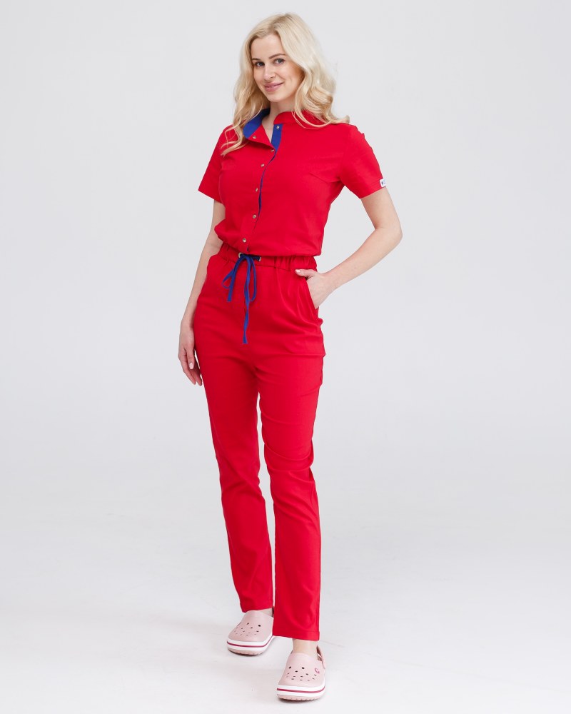 Медицинский комбинезон женский Даллас красный с синей строчкой р. 48, "БЕЛЫЙ ХАЛАТ" 127-339-715