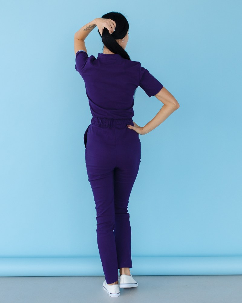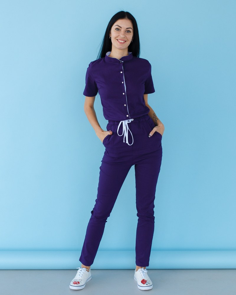 Медицинский комбинезон женский Даллас фиолетовый с белой строчкой р. 50, "БЕЛЫЙ ХАЛАТ" 127-335-715