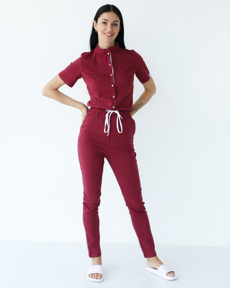Медицинский комбинезон женский Даллас марсала с белой строчкой р. 40, "БЕЛЫЙ ХАЛАТ" 127-326-715