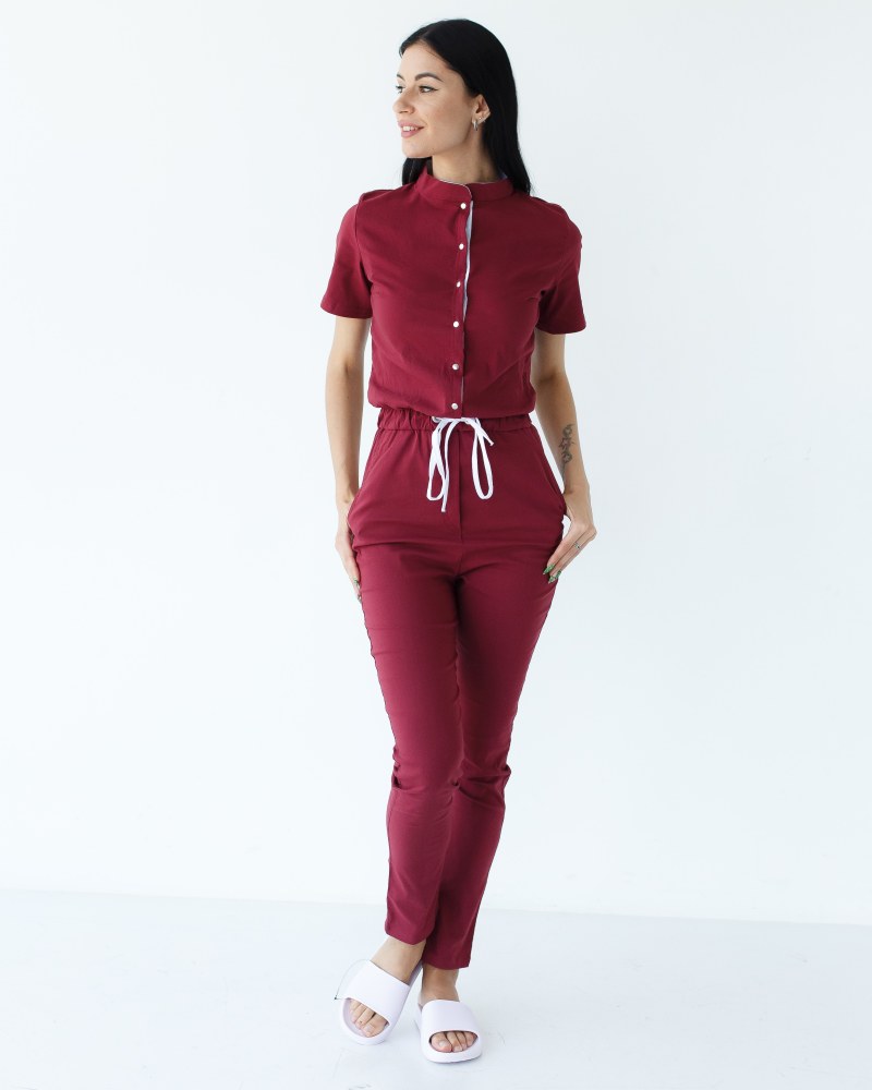 Медицинский комбинезон женский Даллас марсала с белой строчкой р. 42, "БЕЛЫЙ ХАЛАТ" 127-326-715