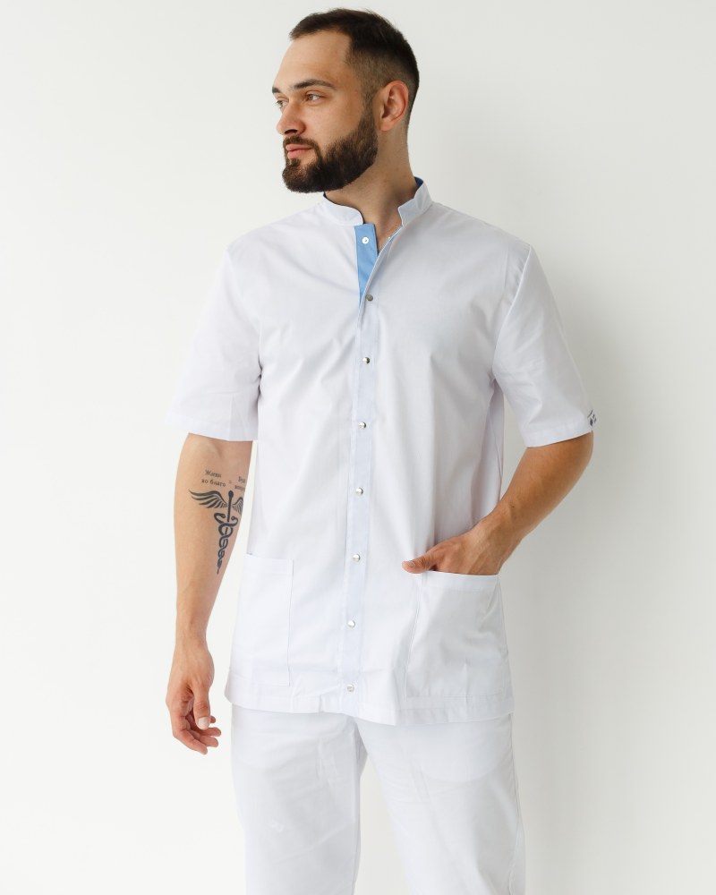 Медицинский костюм мужской Лондон белый-голубой р. 46, "БЕЛЫЙ ХАЛАТ" 133-372-679