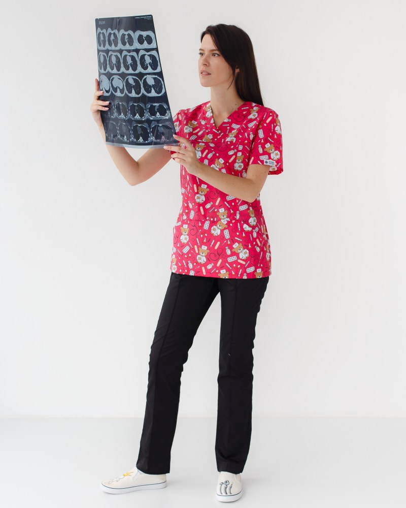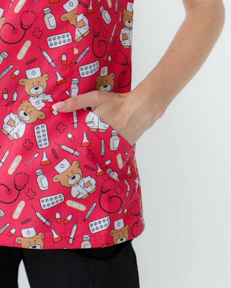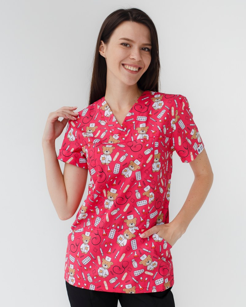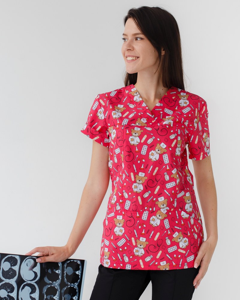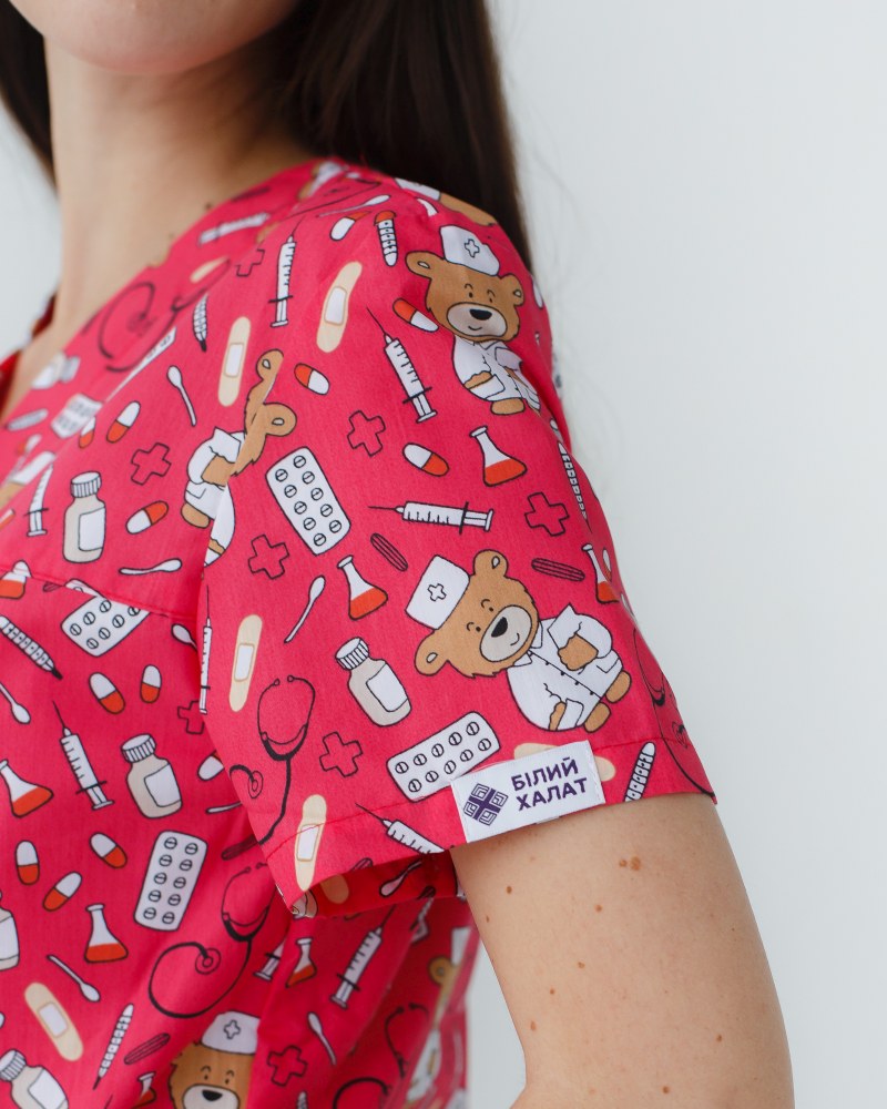 Медицинский костюм с принтом женский Топаз Bear red р. 42, "БЕЛЫЙ ХАЛАТ" 138-343-559