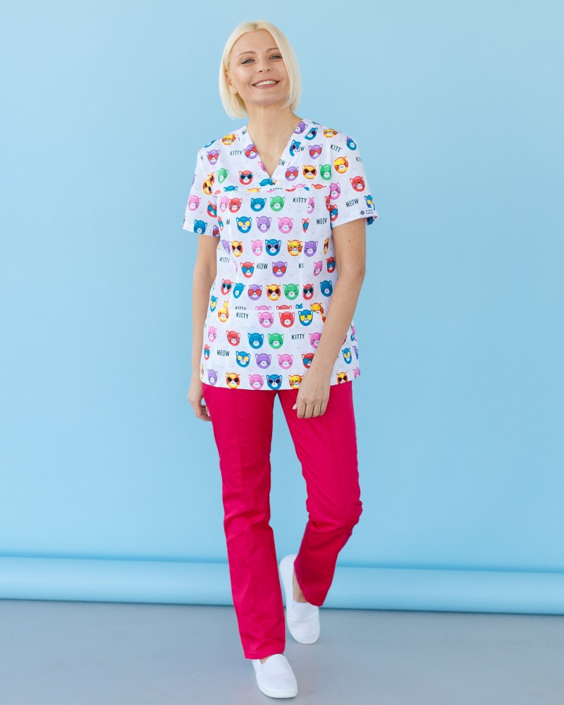 Медицинский костюм с принтом женский Топаз Cats colored р. 48, "БЕЛЫЙ ХАЛАТ" 138-337-569