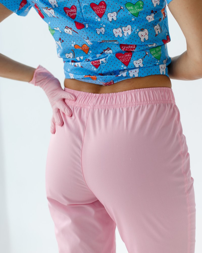 Женский костюм “Топаз” декорированный принтом состоит из рубашки медицинской с короткими втачными рукавами, вместительным карманом-кенгуру и медицинских брюк с вшитыми карманами.