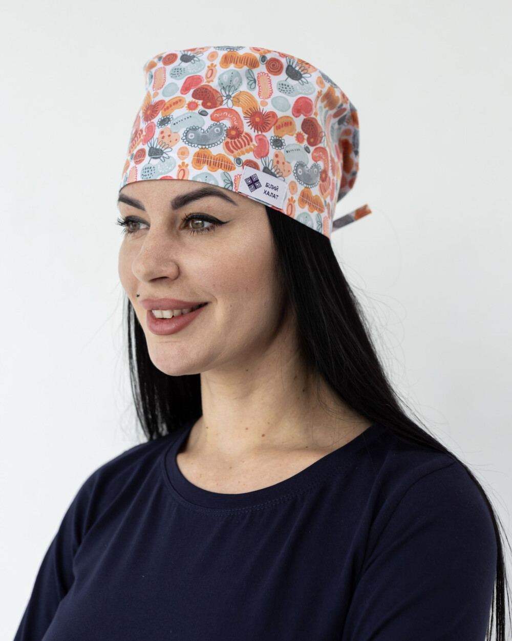 Медицинская классическая шапочка на завязках с принтом Organic, "БЕЛЫЙ ХАЛАТ" 449-417-960