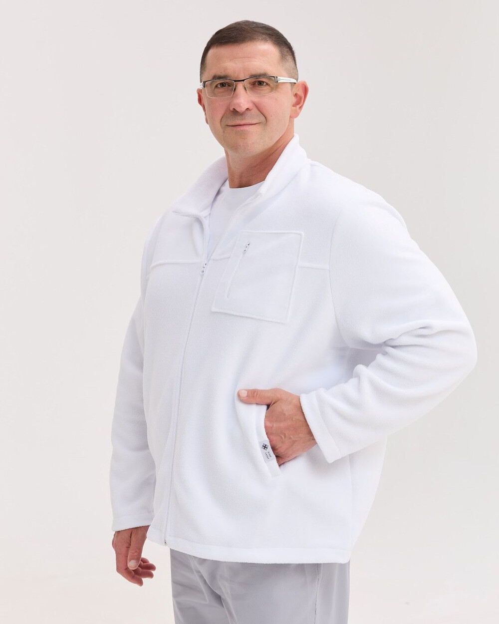 Медицинская кофта мужская флисовая Финляндия белая +SIZE р. 70, "БЕЛЫЙ ХАЛАТ" 598-324-881