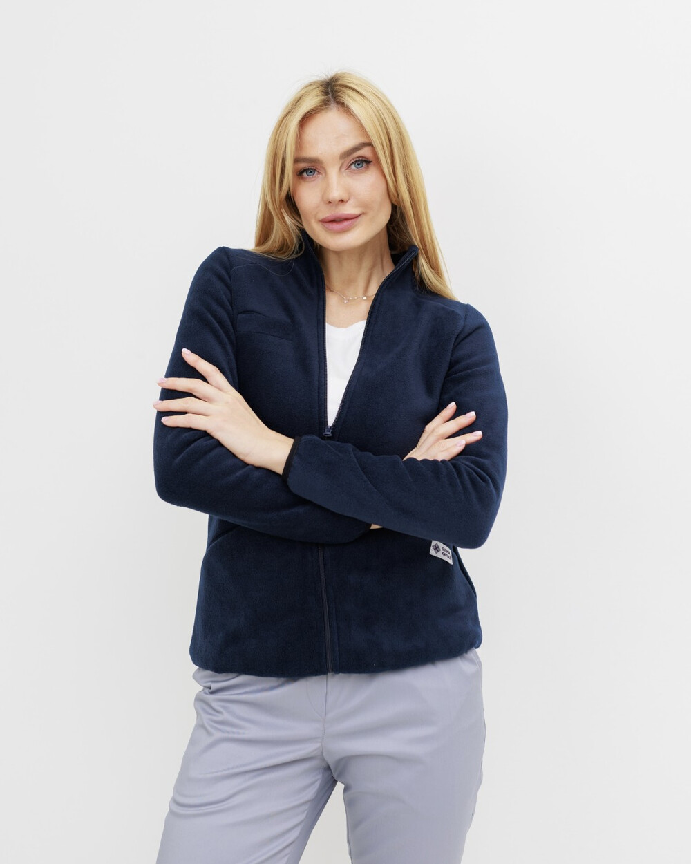Медицинская кофта женская флисовая Дакота темно-синяя р. 2XL, "БЕЛЫЙ ХАЛАТ" 406-406-881