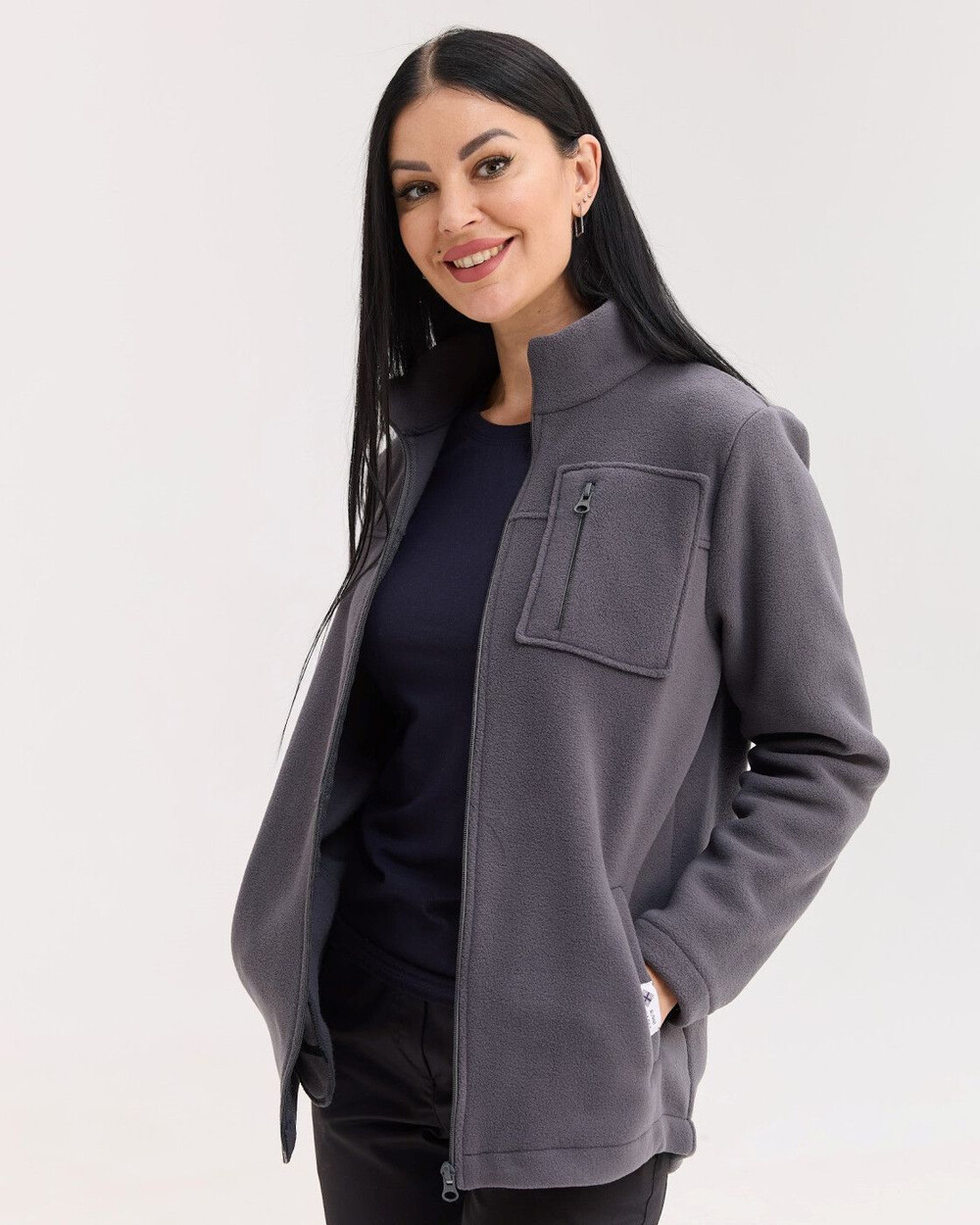 Медицинская кофта женская флисовая Финляндия темно-серая р. 44, "БЕЛЫЙ ХАЛАТ" 607-525-881