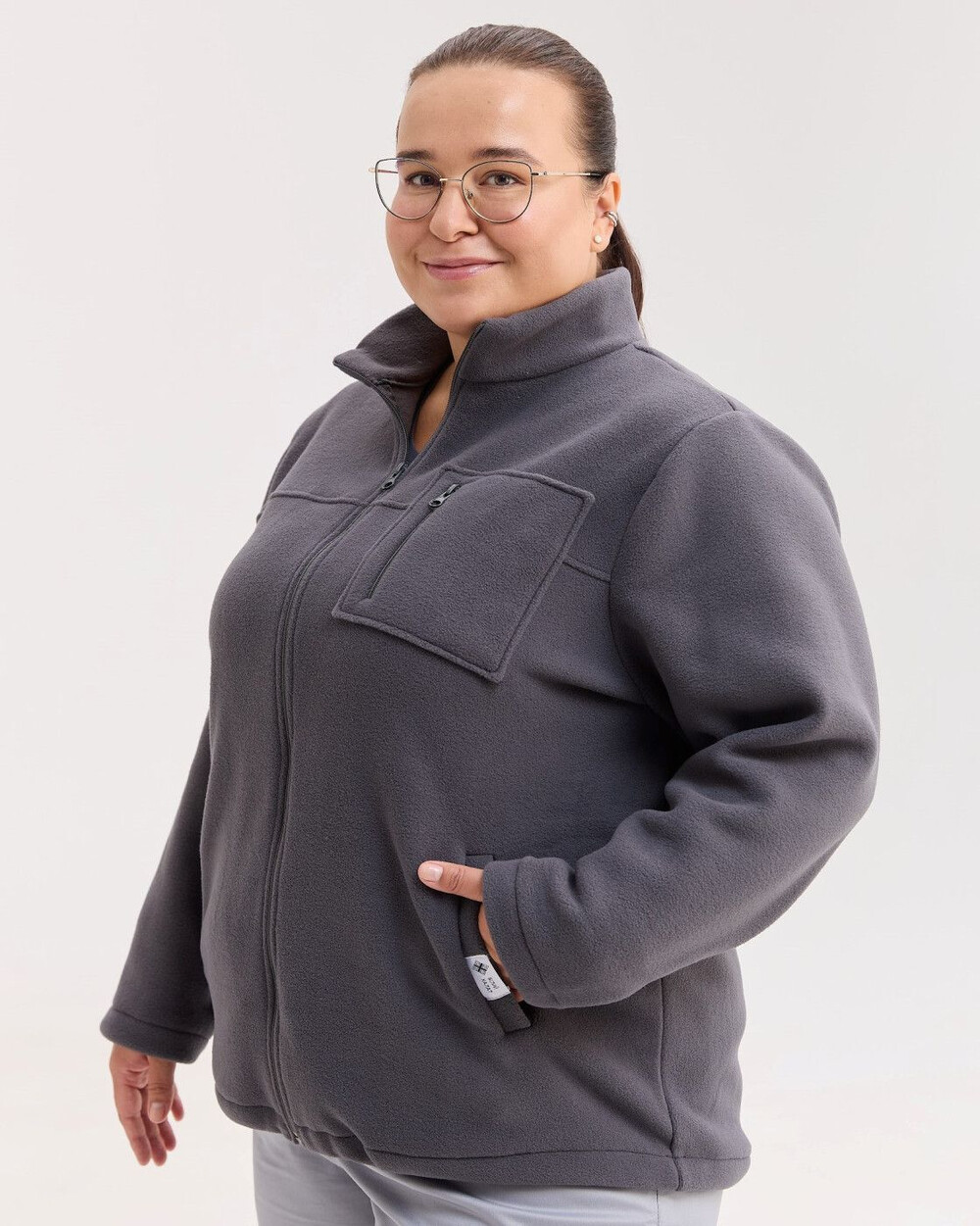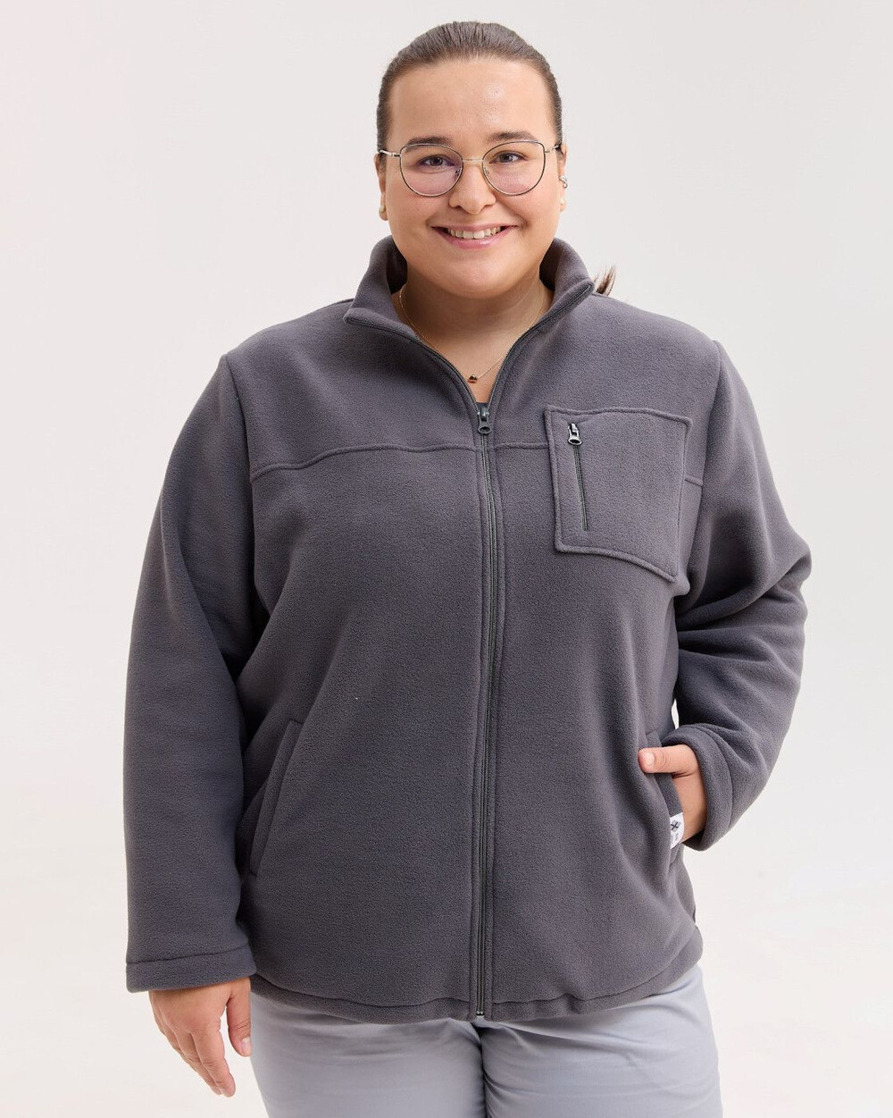 Медицинская кофта женская флисовая Финляндия темно-серая +SIZE р. 64, "БЕЛЫЙ ХАЛАТ" 608-525-881