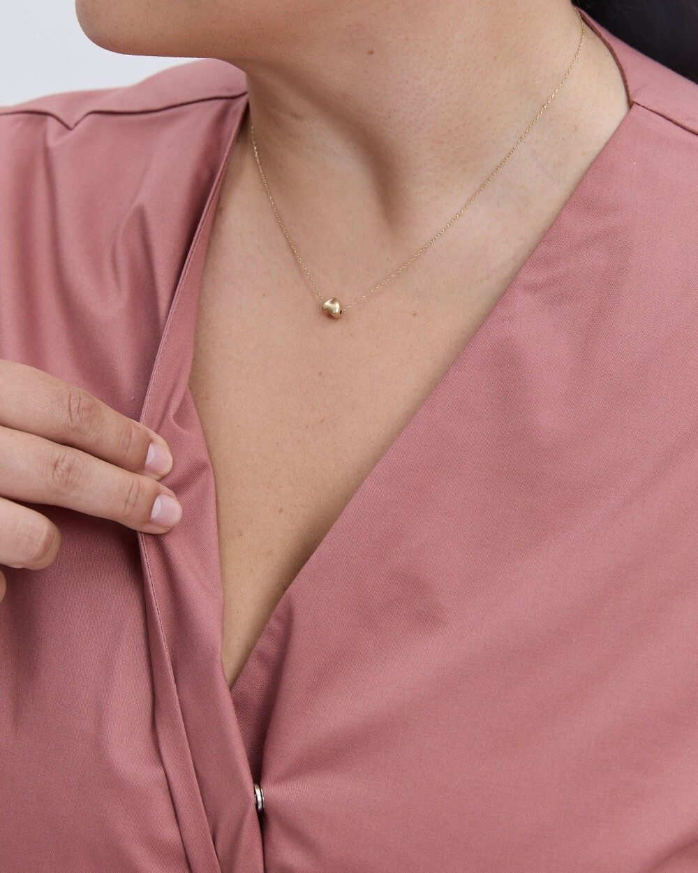 Рубашка — на запах, с короткими рукавами, накладными карманами, на спинке есть накладной шов.