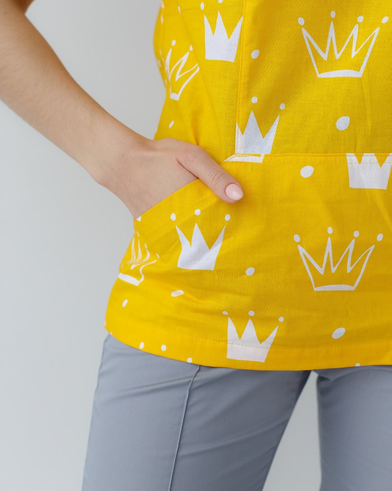 Медицинская рубашка женская Топаз принт корона желтая р. 46, "БЕЛЫЙ ХАЛАТ" 126-397-767