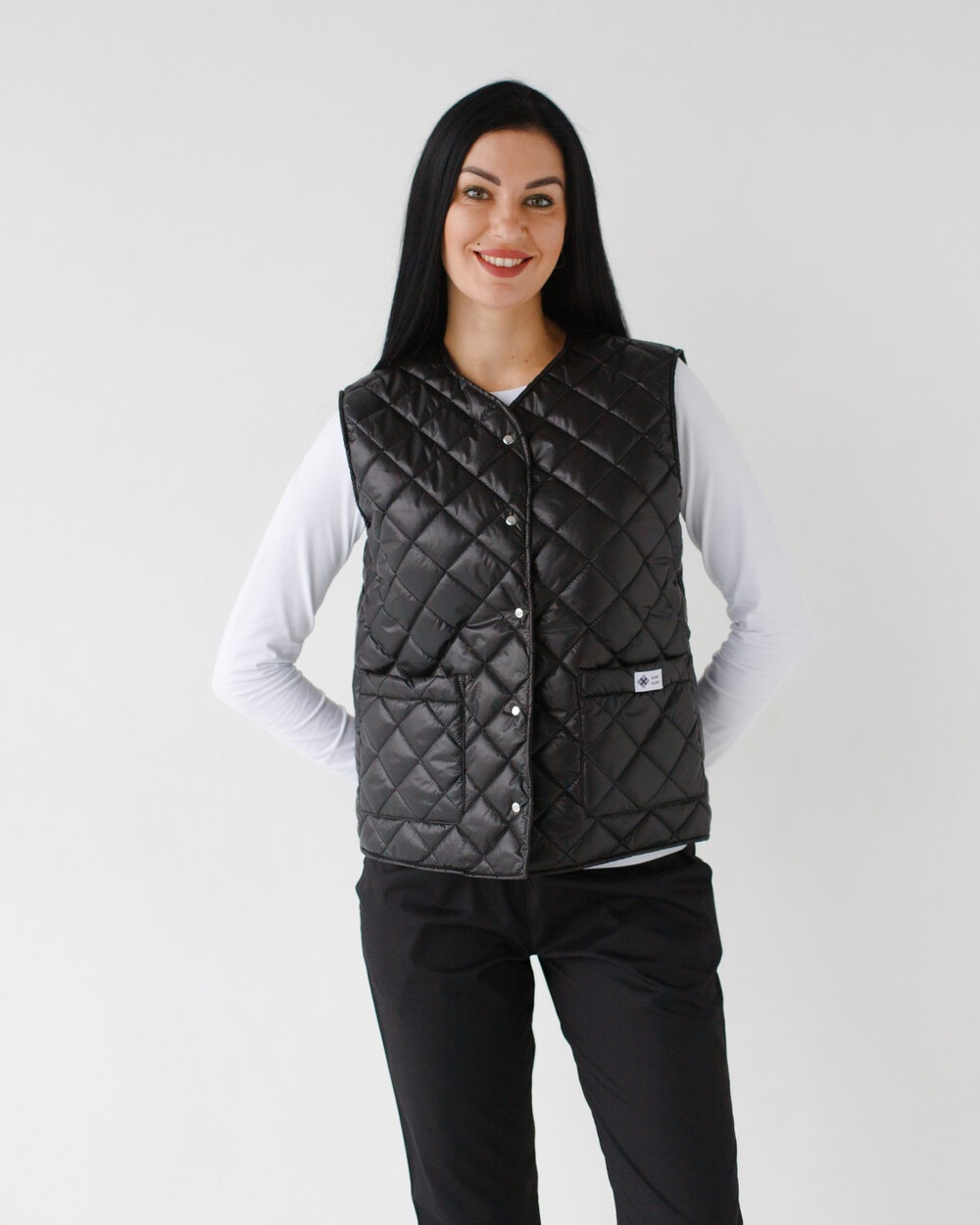 Медицинская утепленная женская жилетка Осло черная р. 56-58, "БЕЛЫЙ ХАЛАТ" 521-321-679