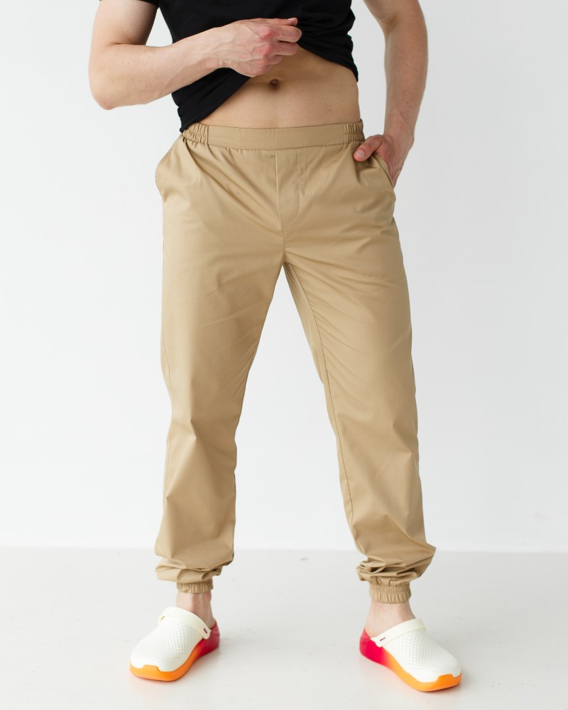 Медицинские штаны мужские джоггеры песочные р. 56, "БЕЛЫЙ ХАЛАТ" 342-323-758