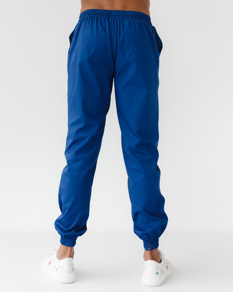Джоггеры — это медицинские брюки мужские зауженные к низу, с эластичными широкими резинками в области талии и лодыжек. На лицевой стороне мед. штанов расположились два вместительных кармана с отрезными бочками.
