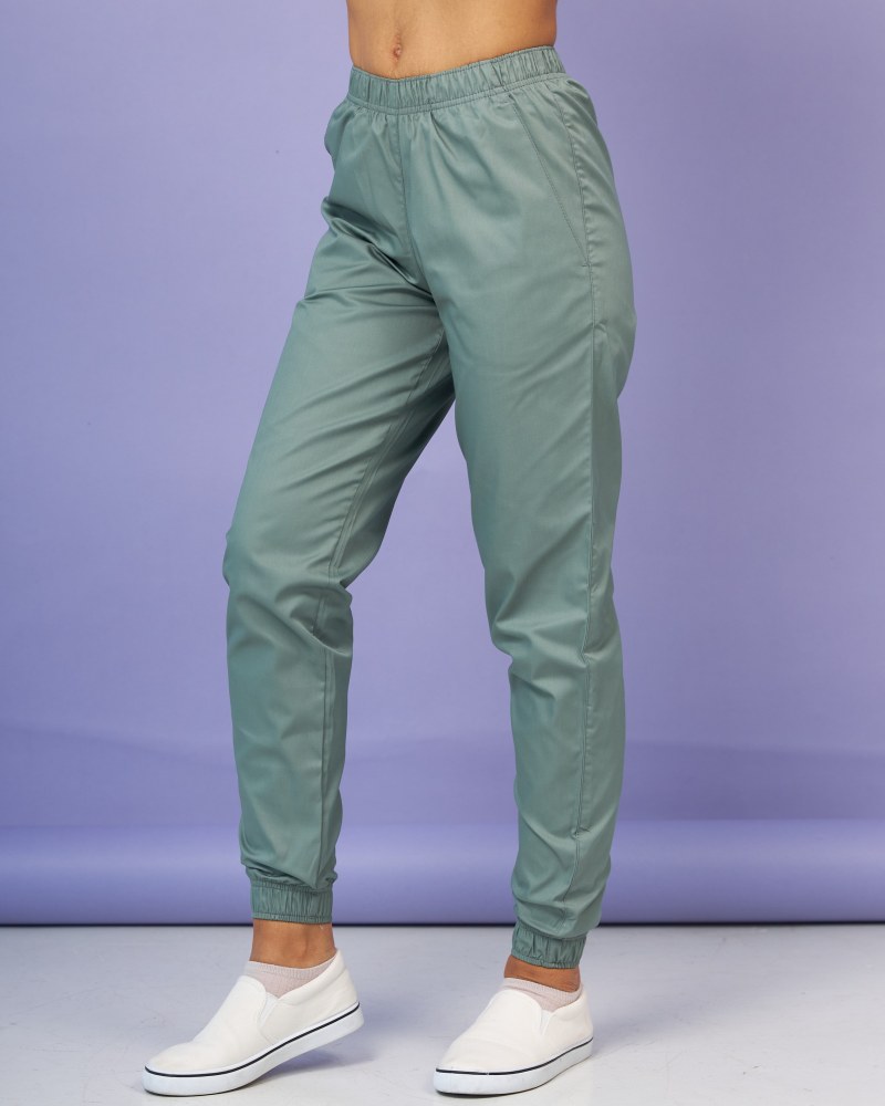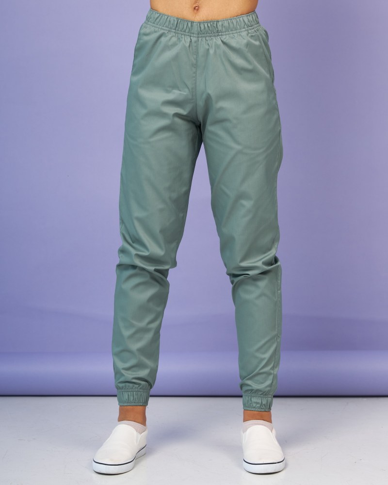 Такие штаны медицинские имеют фасон зауженный к низу. На поясе и подолах брючин расположились удобные эластичные резинки, закрепленные параллельными строчками. Резинки не ограничивают движений, обеспечивают вашу активность в процессе работы.