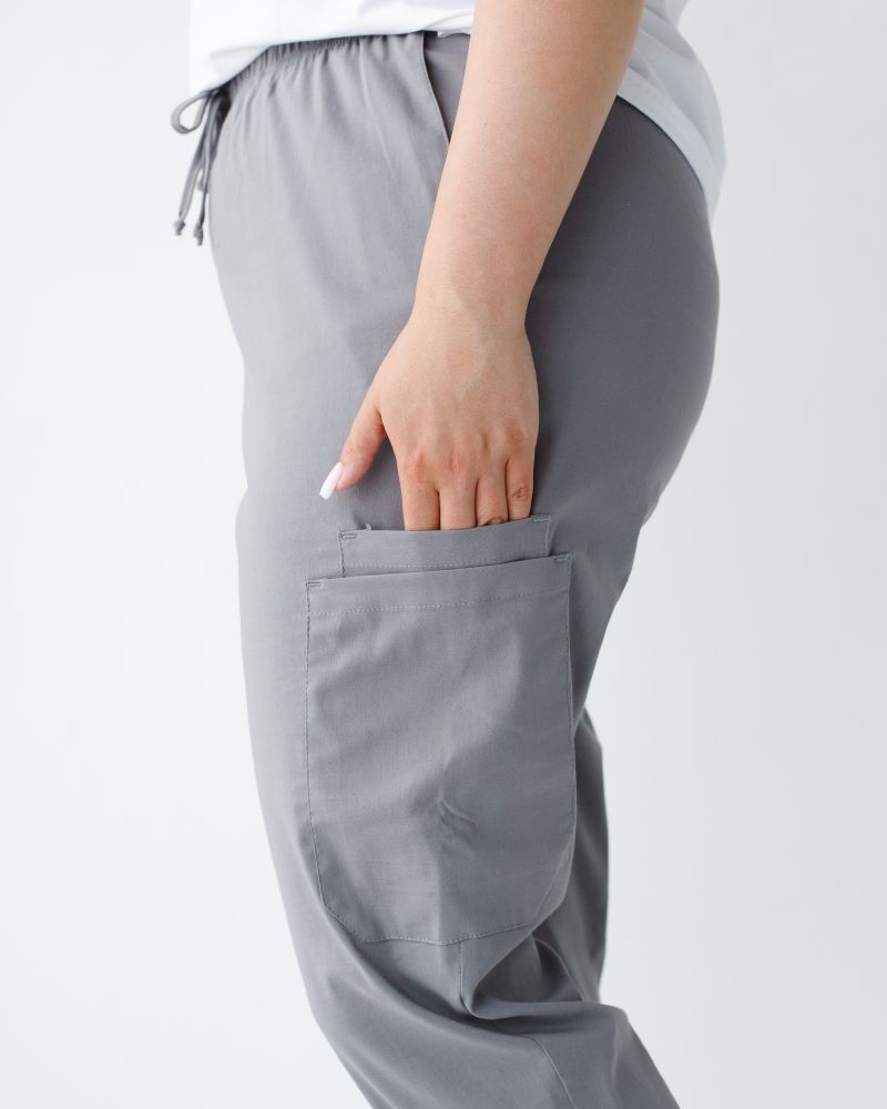 Медицинские брюки женские джоггеры стрейч серые +SIZE р. 58, "БЕЛЫЙ ХАЛАТ" 503-328-758
