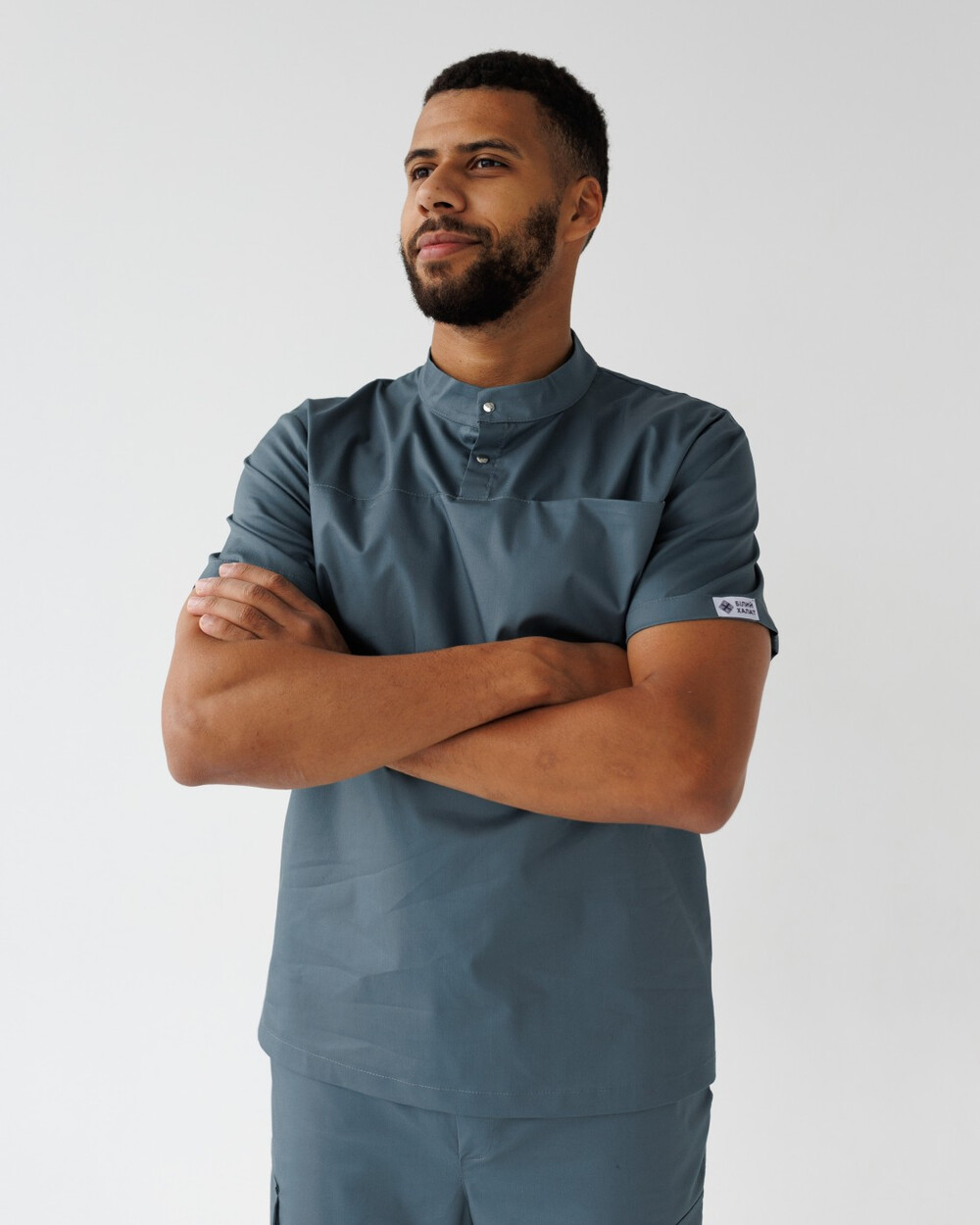 Мед костюм мужской DENVER (Денвер) —это удобный мужской костюм-двойка, который состоит из медицинской рубашки с коротким рукавом и брюк-карго. Рубашка имеет прямой силуэт, дополненный короткими рукавами, левый декорирован брендированной нашивкой. Воротник-стойка и неглубокий разрез горловины застегивается на две кнопки. На лицевой стороне расположился декоративный шов, в котором спрятан функциональный карман.