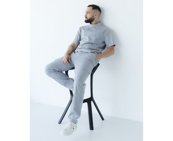 Штаны медицинского костюма мужского DENVER (Денвер) заслуживают особенного внимания. Фасон карго для медицинской мужской униформы — это смелое и практичное решение. Штаны карго, слегка зауженные к низу, позволяют активно двигаться в течении длительных рабочих смен. Средняя высота посадки и вшитая широкая эластичная резинка не сковывает движений, не передавливает. Декоративный гульфик на лицевой стороне медицинских брюк мужских костюма DENVER (Денвер) добавляет образу сдержанности. Штаны дополнены четырьмя вместительными карманами: два втачных выше, под эластичной резинкой, и два накладных ниже линии бедра. Накладные карманы закрываются клапаном.
